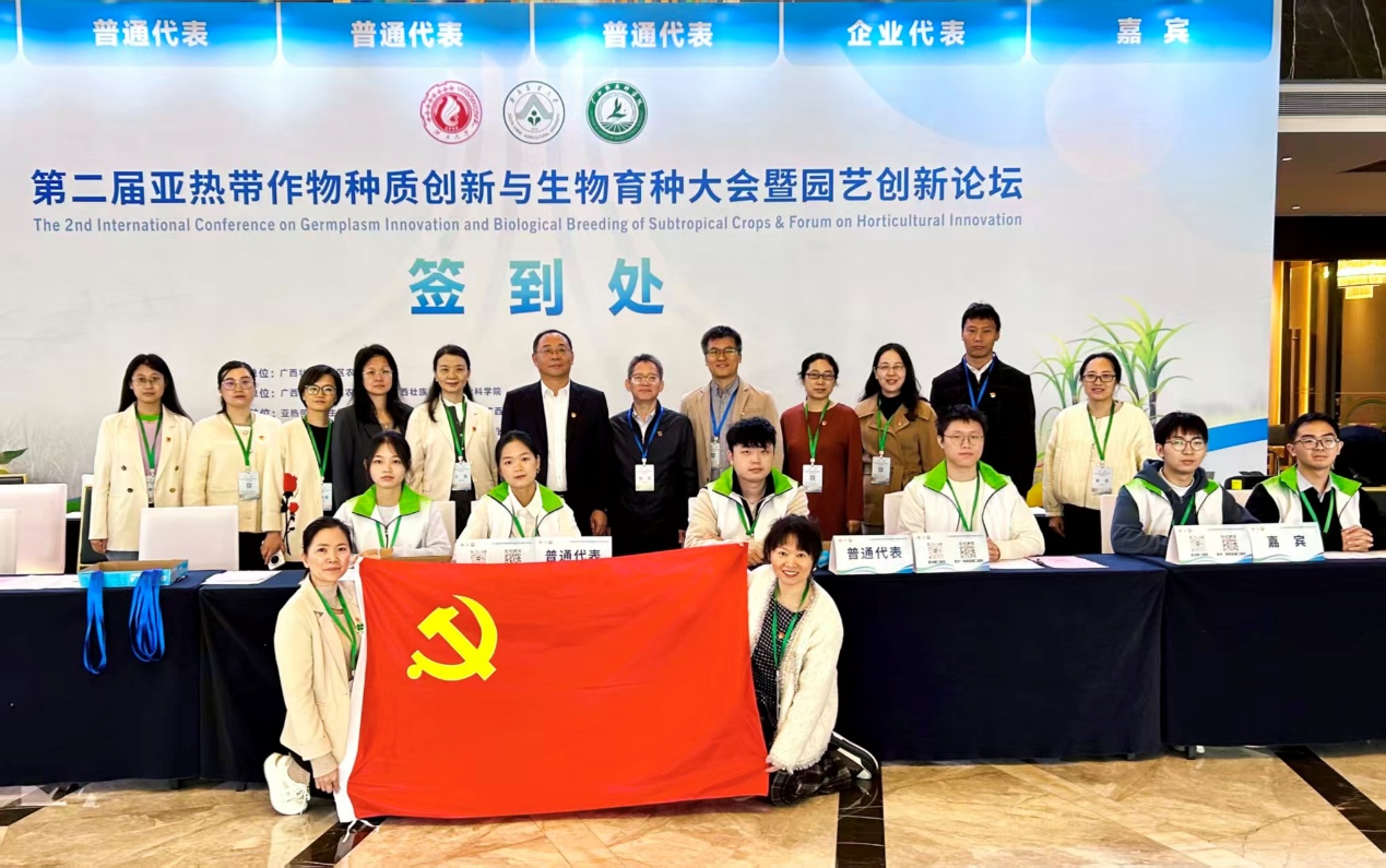 2025 年 11 月 21-23 日,第二届亚热带作物种质创新与生物育种大会暨园艺创新论坛在南宁隆重召开。公司党政办教工党支部联合亚热带农业生物资源保护与利用国家重点实验室直属党支部开展“党徽闪耀论坛间・服务种业促振兴”主题党日活动,以大会服务为载体,将活动主题转化为实实在在的行动。太阳成集团tyc122cc党委常委、亚热带农业生物资源保护与利用国家重点实验室直属党支部书记于文进副董事长,农公司党委书记袁涛同志共同引领、全程参与,两个支部党员以高度的责任担当投身大会服务,将党建力量融入学术盛会,为大会顺利举办注入红色动能。