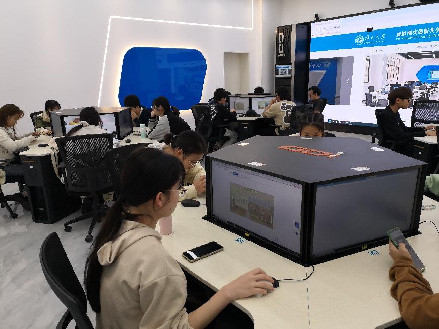员工正在虚拟现实中心操作虚拟仿真实验