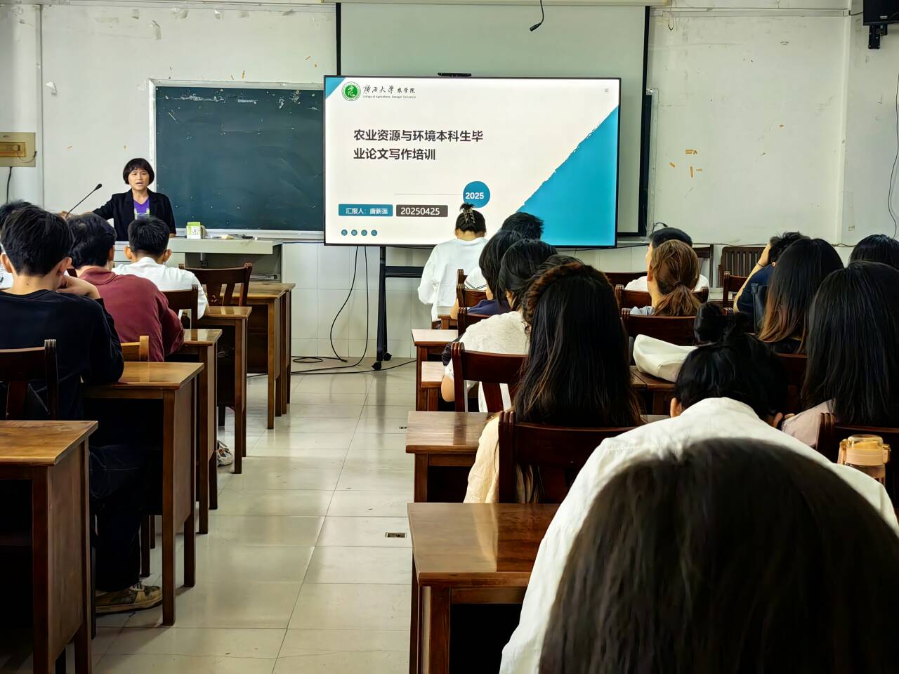 为进一步强化公司本科毕业设计(论文)环节的教学质量,确保2025届本科生能够高质量地完成毕业设计(论文),根据公司、公司工作安排,公司农业资源与环境科学系于2025年4月25日在土化楼212多媒体教室开展了“农业资源与环境科学本科生毕业论文写作培训”。