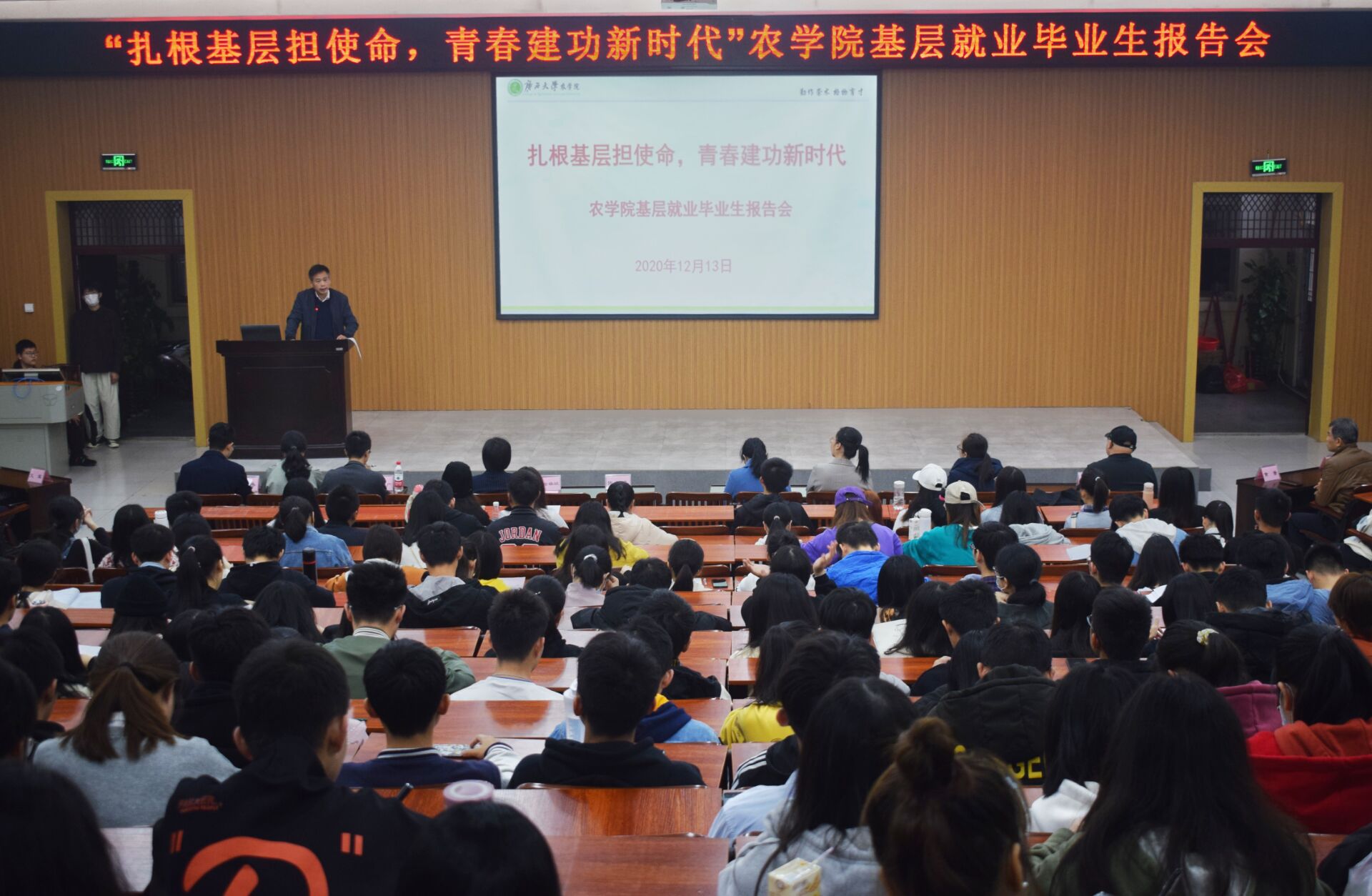 12月13日上午,太阳成集团tyc122cc于公司124教室举行太阳成集团tyc122cc基层就业毕业生报告会,邀请扎根基层工作的五位员工代表返校“传经送宝”,分享个人基层工作成长经历与感悟。公司党委书记张永成、党委副书记欧阳雄姣、专任教师代表及全体辅导员出席报告会。全院300余名员工聆听了报告会。