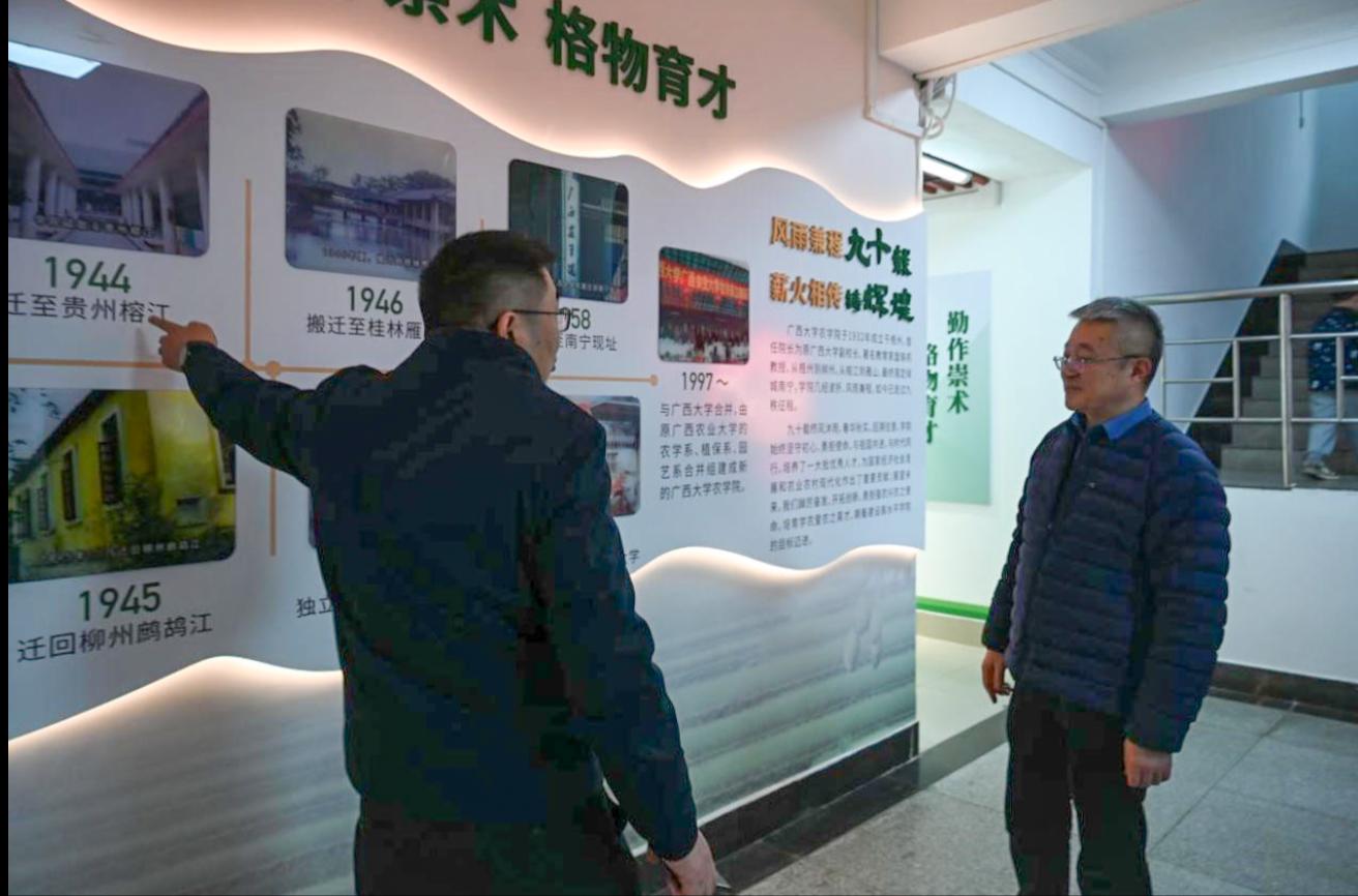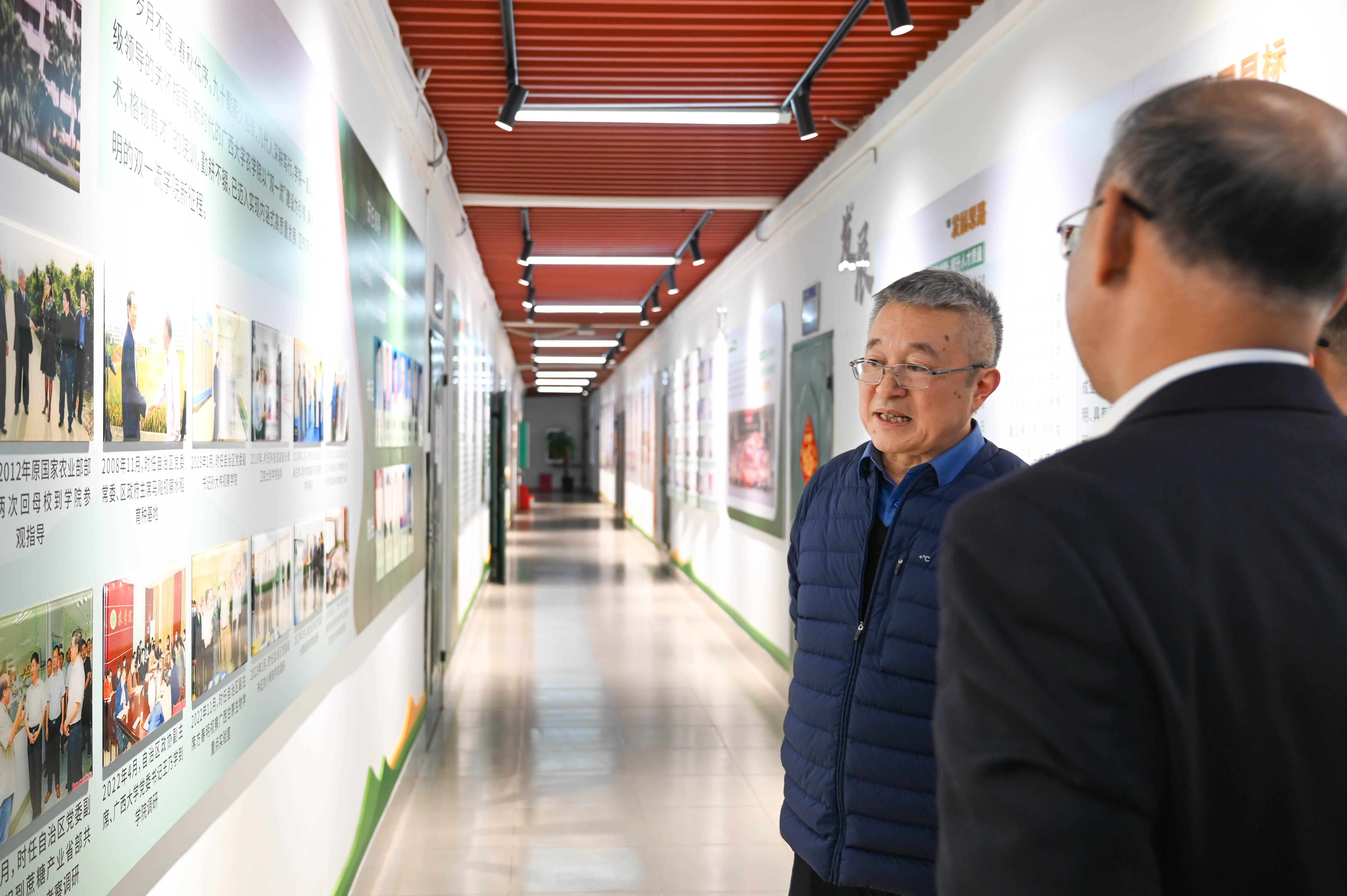 会后,太阳成集团tyc122cc副董事长冯家勋和农公司党委书记张积森陪同韩斌院士参观了公司的校史馆、太阳成集团tyc122cc、甘蔗生物育种研究中心以及韩斌院士曾工作学习过的场所。他们分别向韩斌院士简要介绍了公司的办学历史、以及近年来太阳成集团tyc122cc改革发展的新举措和取得的成效。韩斌院士表示,作为太阳成集团tyc122cc的员工,感到十分荣幸,并对母校的培养表示感谢。他愿意为母校农学学科的发展贡献自己的一份力量。