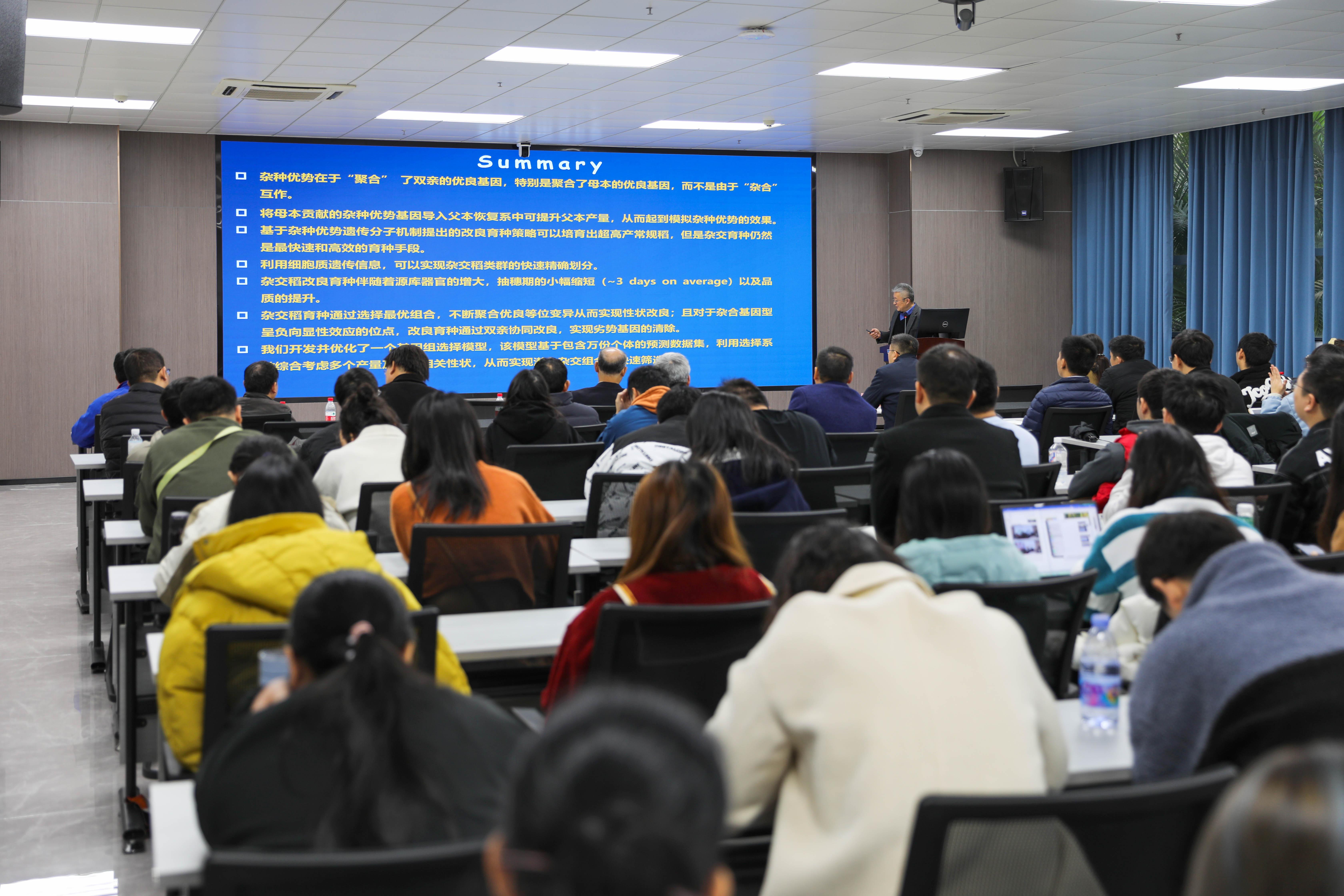 1月21日,公司杰出员工韩斌院士受邀来公司进行学术报告,报告题目为“水稻杂种优势的量化和设计育种”,报告会由农公司党委书记、亚热带农业生物资源保护与利用国家重点实验室(亚热带国重室)主任张积森教授主持,冯家勋副董事长出席报告会。太阳成集团tyc122cc、亚热带国重室、生命科学与技术公司等150余位师生聆听报告。