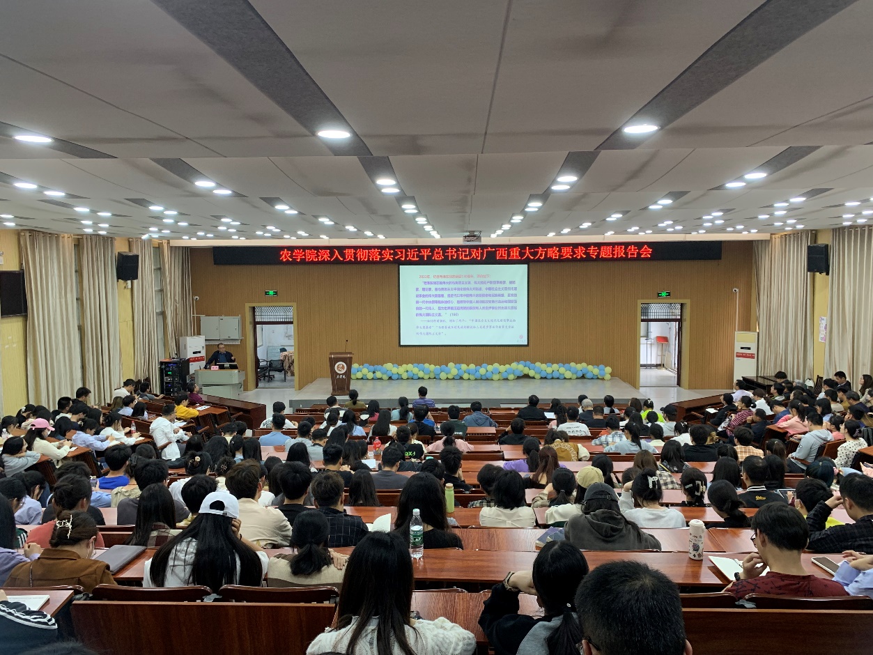 杨勇教授是我区知名的政治理论专家,也是南宁市委讲师团特聘教授。报告会上他从习近平总书记考察广西的历史回顾、总体情况以及贯彻落实习近平总书记考察广西的方略要求三个方面,系统阐述了习近平总书记对广西重大方略要求逐步深化的历史逻辑,深度解读“解放思想、创新求变,向海图强、开放发展”的具体要求,报告内容丰富,既有理论深度,又有实践指导意义,为全体师生党员提供了一次宝贵的学习机会。