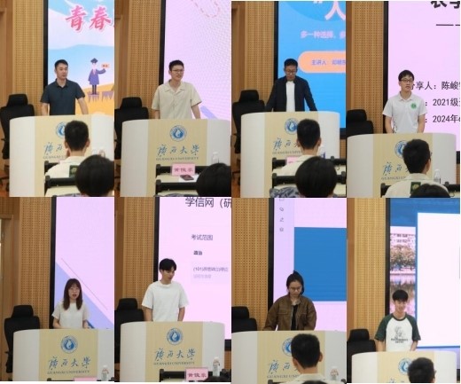 当天上午,公司在10教305教室同时举办“我的青春在西大”员工分享会。公司党委副书记甘敏思、团委书记李诺、团委副书记李秋实及学工组老师们出席本次活动,分享会还特别邀请了公司优秀员工2019届农村与区域发展专业研究生李朝锋、2022届农艺与种业专业研究生黄俊豪、2023届植物保护专业本科生邓明东以及五位2024届毕业生为大家分享自己的就业、升学心历路程及宝贵经验,现场的农院学子在听了师兄师姐的分享后,纷纷表示明晰了自己的职业规划、提升了自身的求职技巧,未来将会为各行各业高质量发展贡献属于我们农院人的力量。