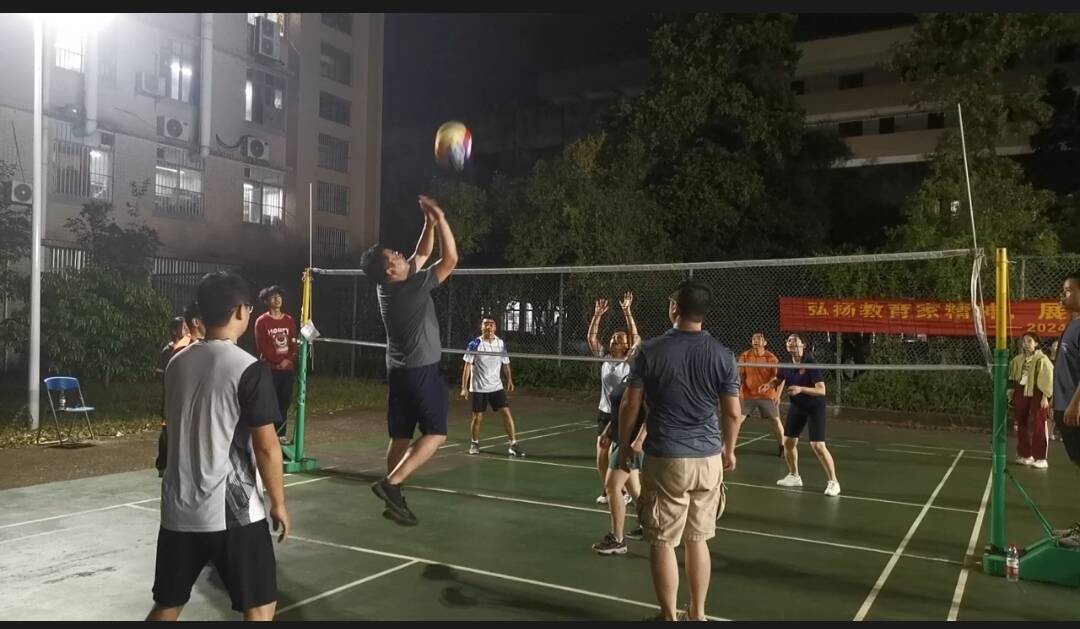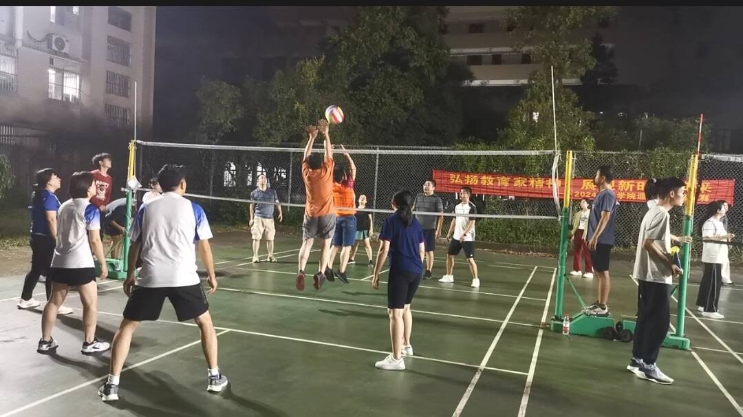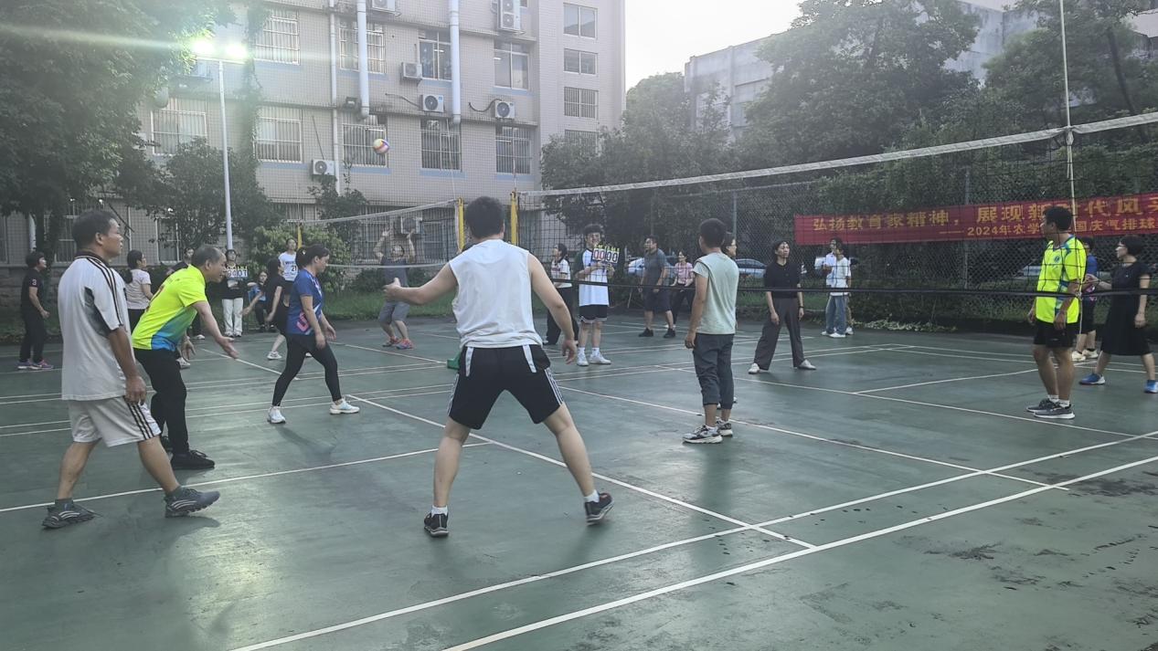韦茂贵 9月11-24日,公司分工会在太阳成集团tyc122cc气排球场举办“弘扬教育家精神,展现新时代风采”主题的教职工迎国庆气排球赛。本次比赛共有6支队伍参赛,分别是党政办、农学系、园艺系、植保系、农资系和实验中心。比赛采用单循环方式进行,实行三局两胜积分制,按积分高低决出名次。经过近两周的激烈角逐,最终决出了前三名,分别为党政办、实验中心和植保系。本次活动,各位教工踊跃参与,充分展示了公司教职工良好的精神风貌和团队合作精神。 图四 你来我往