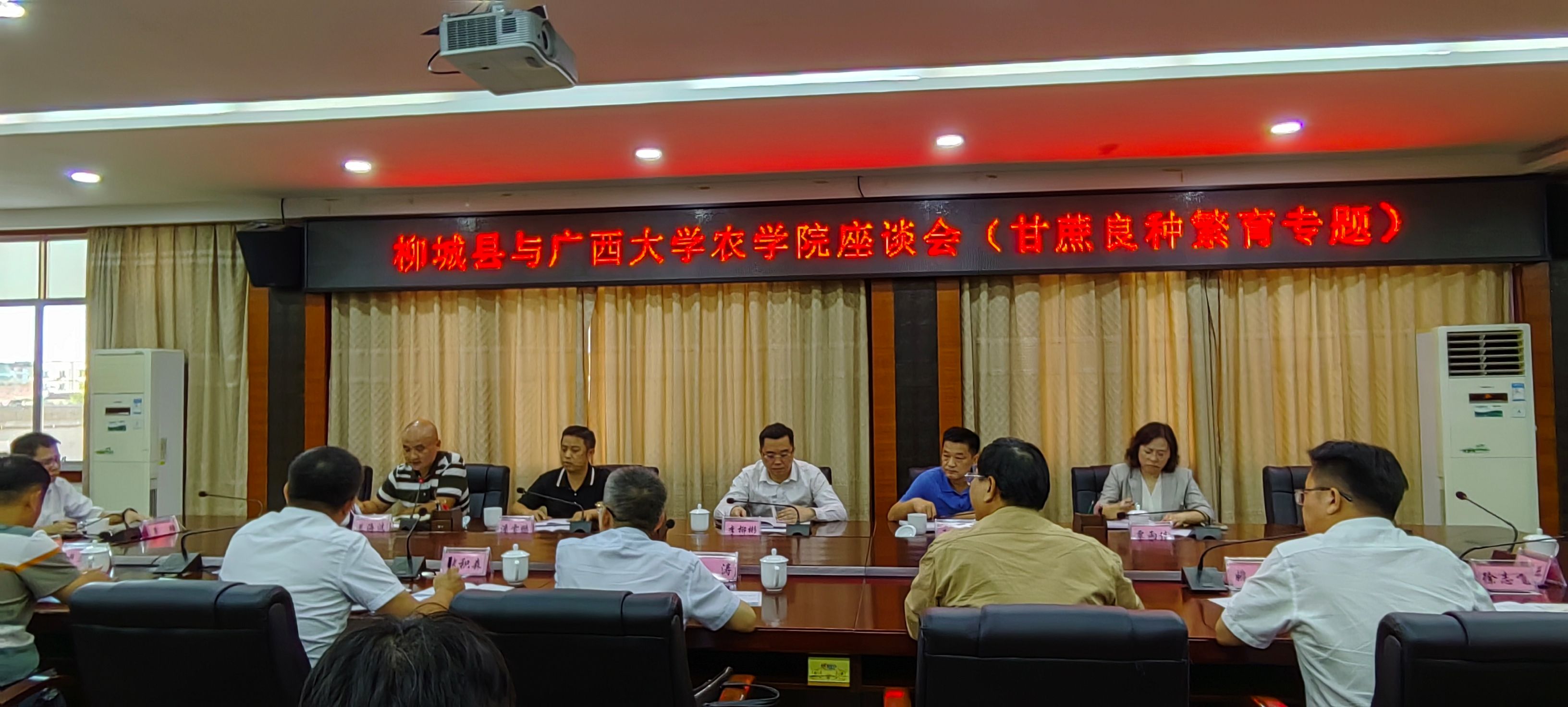 随后,调研组赴柳城甘蔗研究所进行调研,并与柳城县委、县人民政府领导进行了座谈。座谈会上,袁涛书记和张积森经理分别介绍了公司在农业科技领域的最新研究成果和人才培养情况。柳城县委、县政府领导对公司在甘蔗产业发展方面的贡献给予了高度评价,并表达与公司在甘蔗品种选育、种植、加工、销售等环节开展深入合作的意愿。双方就如何共同推动柳城县甘蔗产业的可持续发展进行了深入探讨。双方表示,要通过校地合作,推动柳城县甘蔗产业的转型升级,助力乡村振兴和地方农业产业发展。