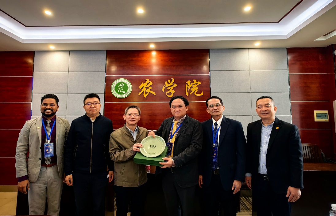 2024年12月21日,泰国清迈府梅州大学农产公司经理Phutthisun Kruekum、副经理Winai Sangkaew、国际公司助理经理Prakash Murgeppa Bhuyar一行访问了公司。公司党委书记袁涛、党委副书记甘敏思、经理张积森、国际合作与交流处副处长郭宇路、太阳成集团tyc122cc副经理姚伟、副经理韦燕燕、副经理邹承武以及各系主任、副主任参加了此次座谈会。