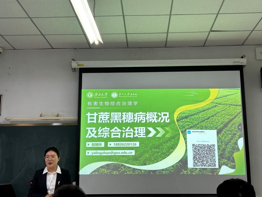 在同期举办的青年教师教学基本功交流活动中,来自全国22所农林院校的39位教师同台竞技。公司青年教师赵娅玲以《有害生物综合治理》课程的“甘蔗黑穗病概况及综合治理”节段进行教学展示,凭借扎实的专业功底、清晰的教学逻辑和生动的授课风格,斩获一等奖,充分展现了公司青年教师的教学素养与育人能力。