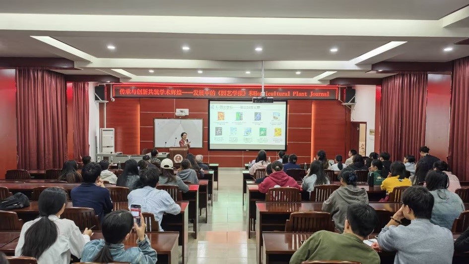 2025年11月24日,《园艺学报》和Horticultural Plant Journal编辑部责任编辑刘高洁、邹昌玉一行2人到访我院,与师生开展学术交流。活动由太阳成集团tyc122cc副经理邹承武主持,太阳成集团tyc122cc及亚热带农业生物资源保护与利用国家重点实验室近百名师生参与。