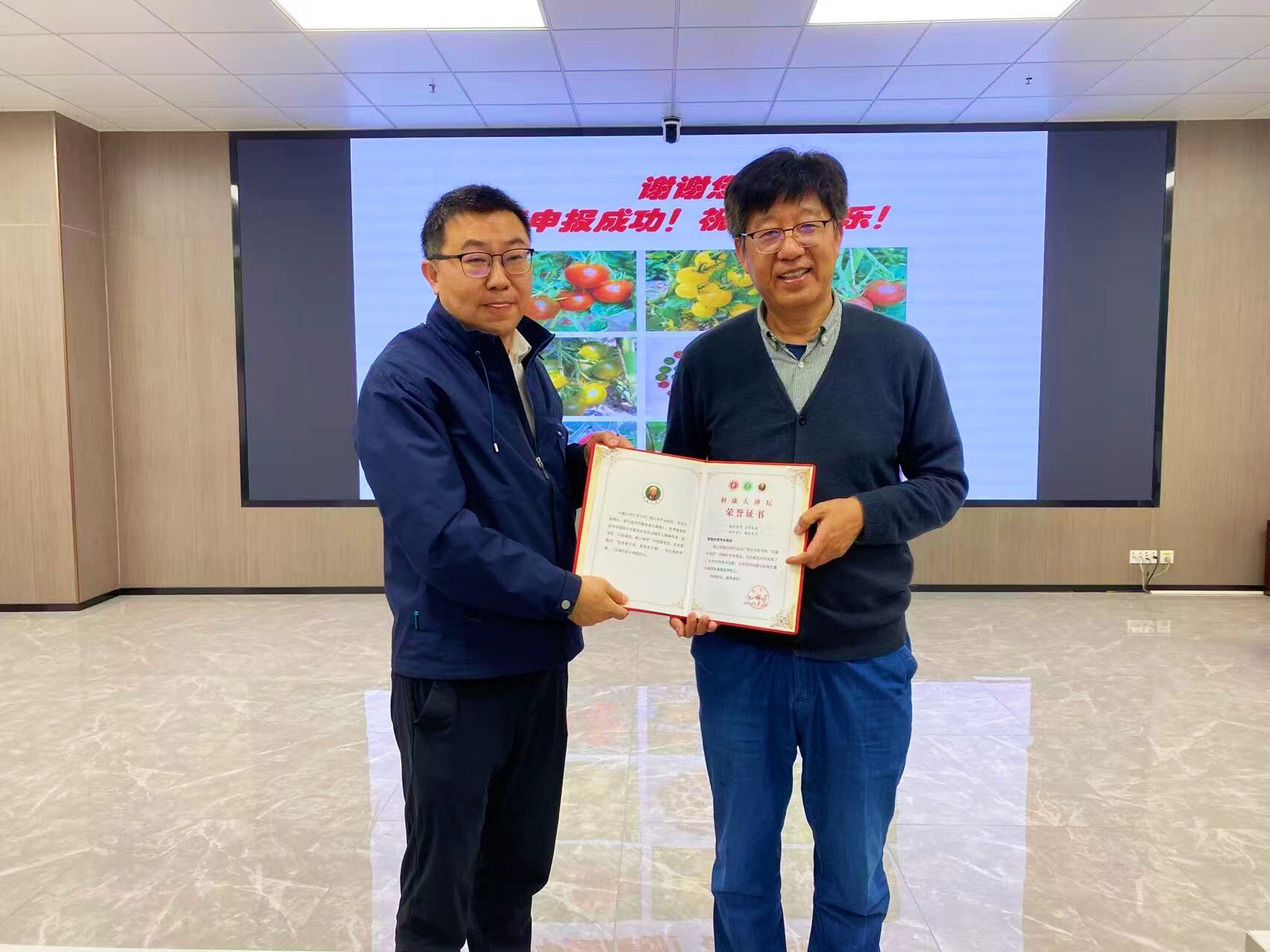 张积森经理向李传友教授颁发何康大讲坛荣誉证书