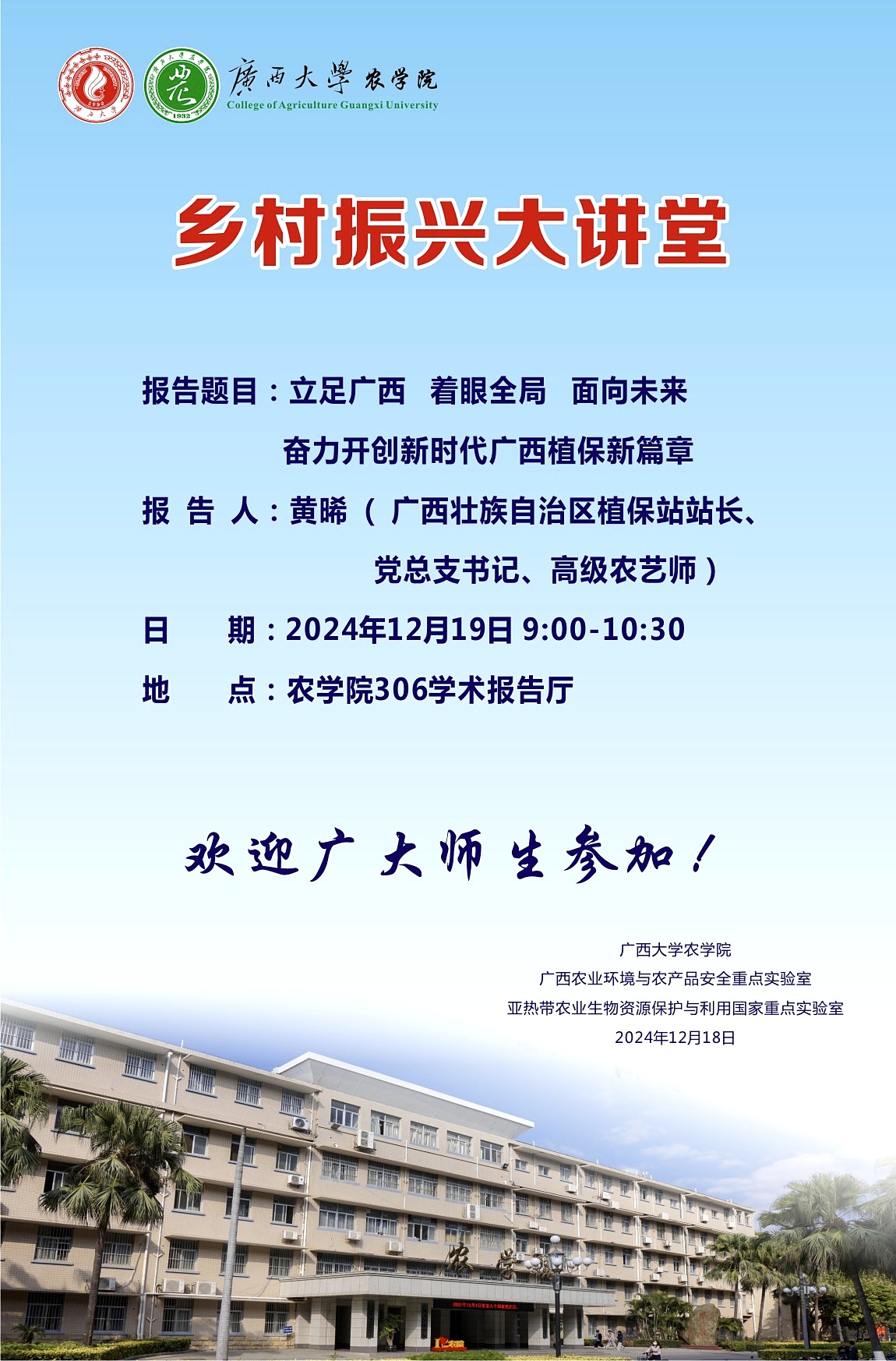 乡村振兴大讲堂-立足广西着眼全局面向未来奋力开创新时代广西植保新篇章-黄晞