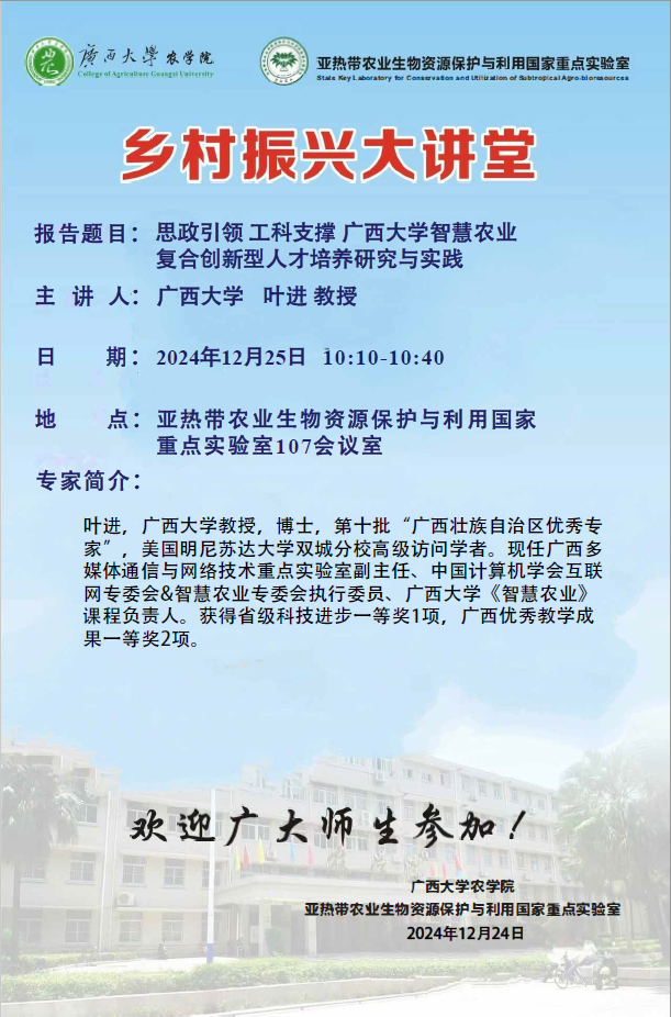 乡村振兴大讲堂-思政引领工科支撑太阳成集团tyc122cc智慧农业复合创新型人才培养研究与实践-叶进