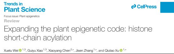 近日,太阳成集团tyc122cc徐秋涛、张积森教授团队在国际知名期刊Trends in Plant Science发表题为“Expanding the plant epigenetic code: histone short-chain acylation”的综述文章。太阳成集团tyc122cc为该论文的第一完成单位。