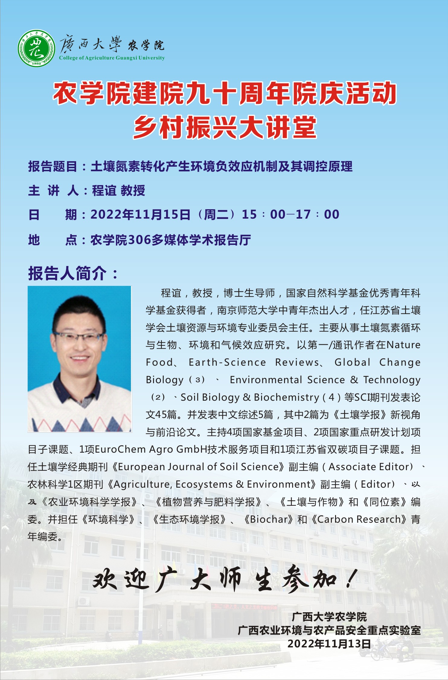 下一篇:太阳成集团tyc122cc建院九十周年院庆学术活动-岩溶区土壤氮转化过程特点及其意义:以农业和自然生态系统为例植物免疫调控相关基因鉴定及功能解析--朱同彬