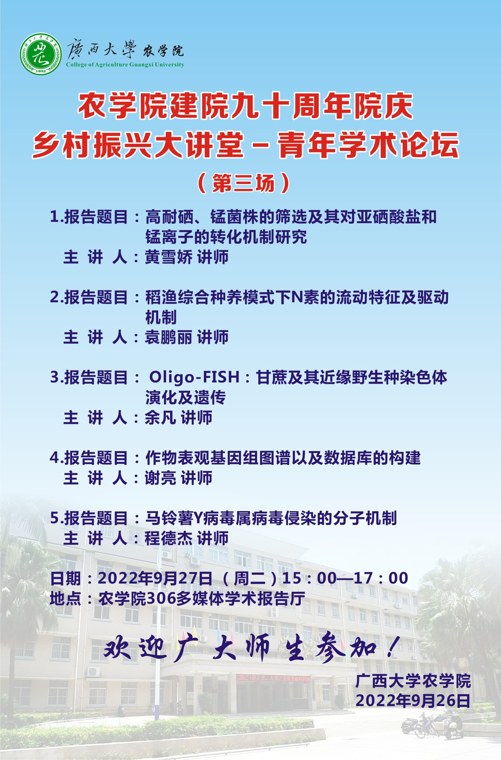 太阳成集团tyc122cc建院九十周年院院庆乡村振兴大讲堂-青年学术论坛(第三场)