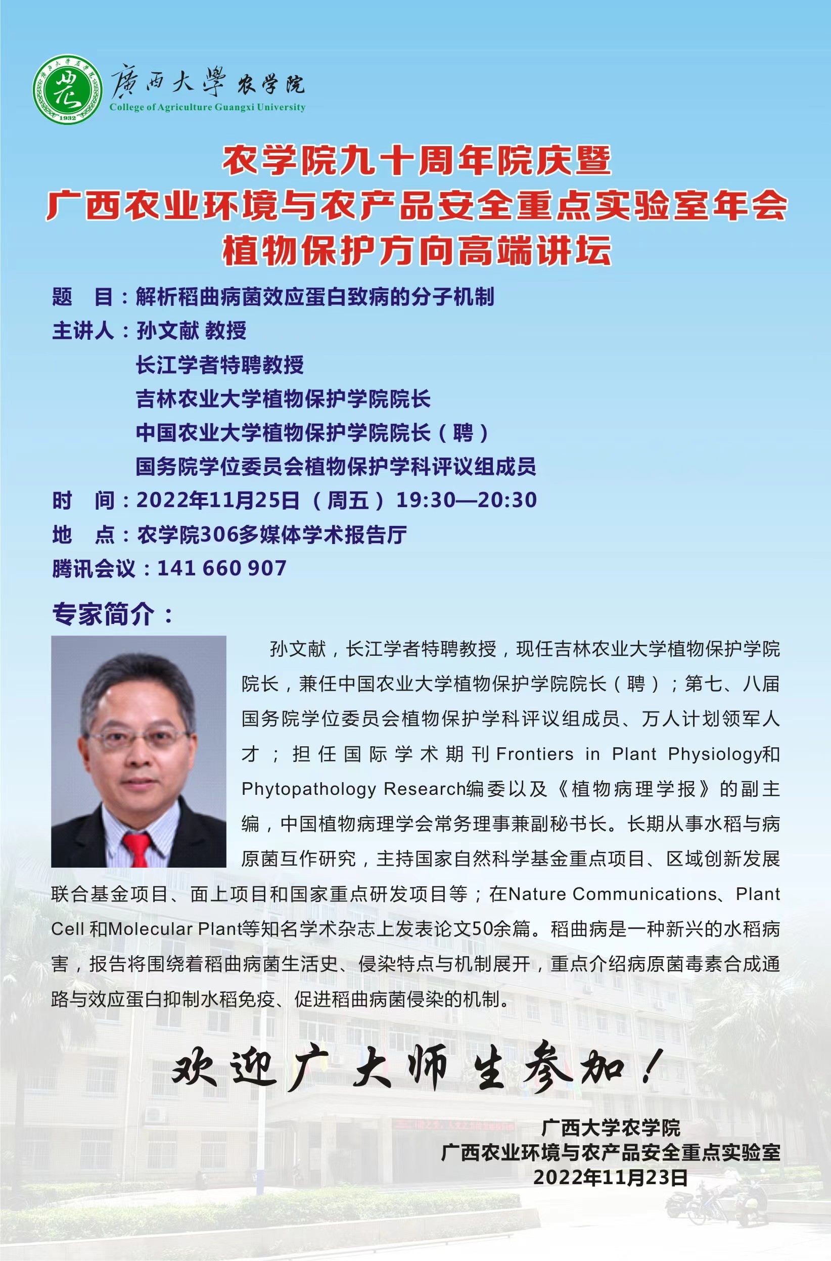 太阳成集团tyc122cc建院九十周年院庆学术活动-解析稻曲病菌效应蛋白致病的分子机制-孙文献