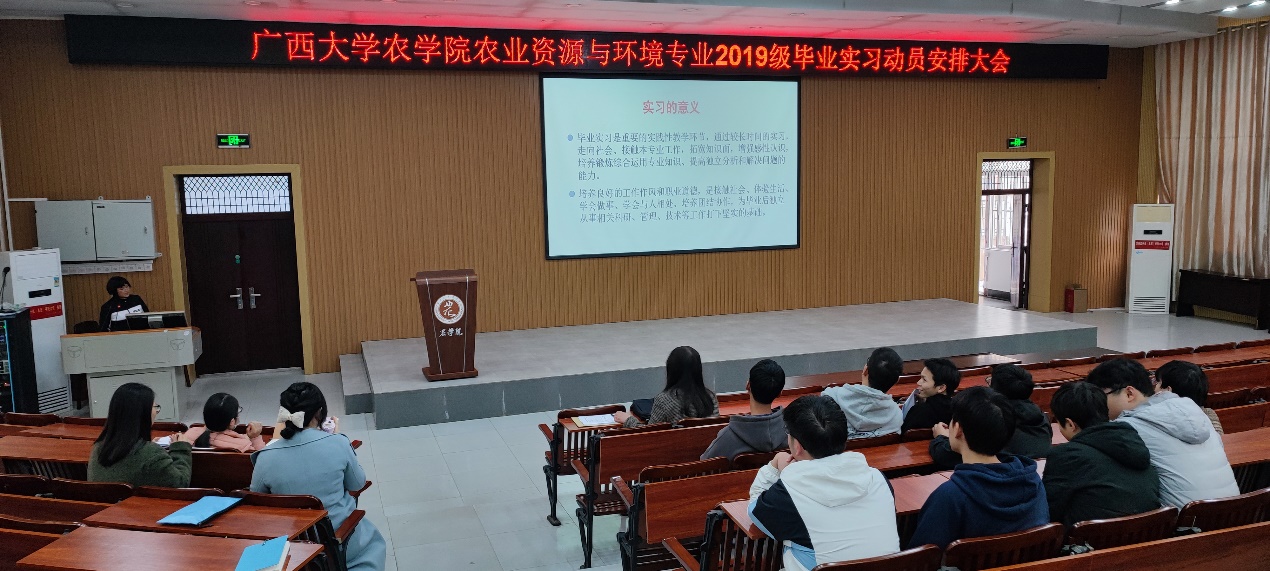 实习是高校人才培养的关键环节,2月16日下午,公司农业资源与环境专业组织召开了2019级本科生毕业实习动员大会。会议由专业实习负责人唐新莲老师主持,太阳成集团tyc122cc主管教学副经理韦燕燕老师、各实习指导老师和所有参加实习的员工出席了本次大会。