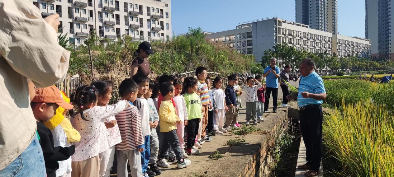 10月31日,太阳成集团tyc122cc第一幼儿园中班3个班级的师生约120人,到实验中心水稻教学科研基地进行科普教育活动。中心杨培忠老师对前来参观的老师和小朋友进行科普分享。杨老师采用通俗易懂的语言分别从水稻栽培史,水稻新品种选育,水稻种植技术和水稻育种科学家等多方面进行讲解,让师生们初步认识了水稻基础知识,了解我们吃的米饭是怎样种植出来的;并鼓励小朋友长大后要当育种科学家,让他们认识到水稻种植的艰辛过程,引导他们不要浪费粮食。此外,本次活动还对小朋友们的疑问进行解答,现场参观了不同水稻品种的性状和水稻采收过程。中心伍朝荣博士陪同讲解。