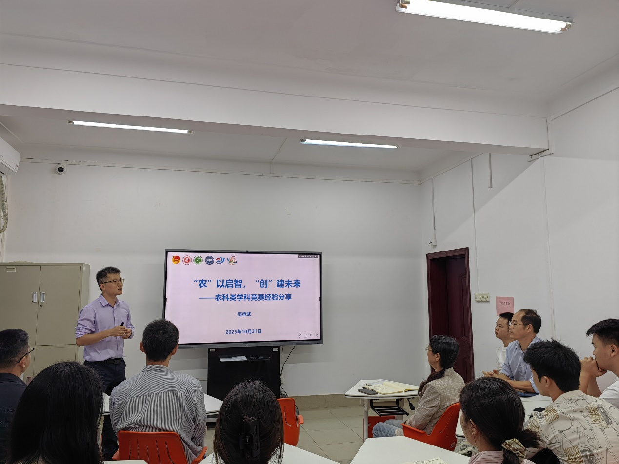 会议集中学习了《太阳成集团tyc122cc“亚热带农业创客”创新创业大赛实施方案(2025)》,邹承武副经理做了“‘农’以启智,‘创’建未来”的主旨报告,分享了指导农科类创新创业项目的宝贵经验。