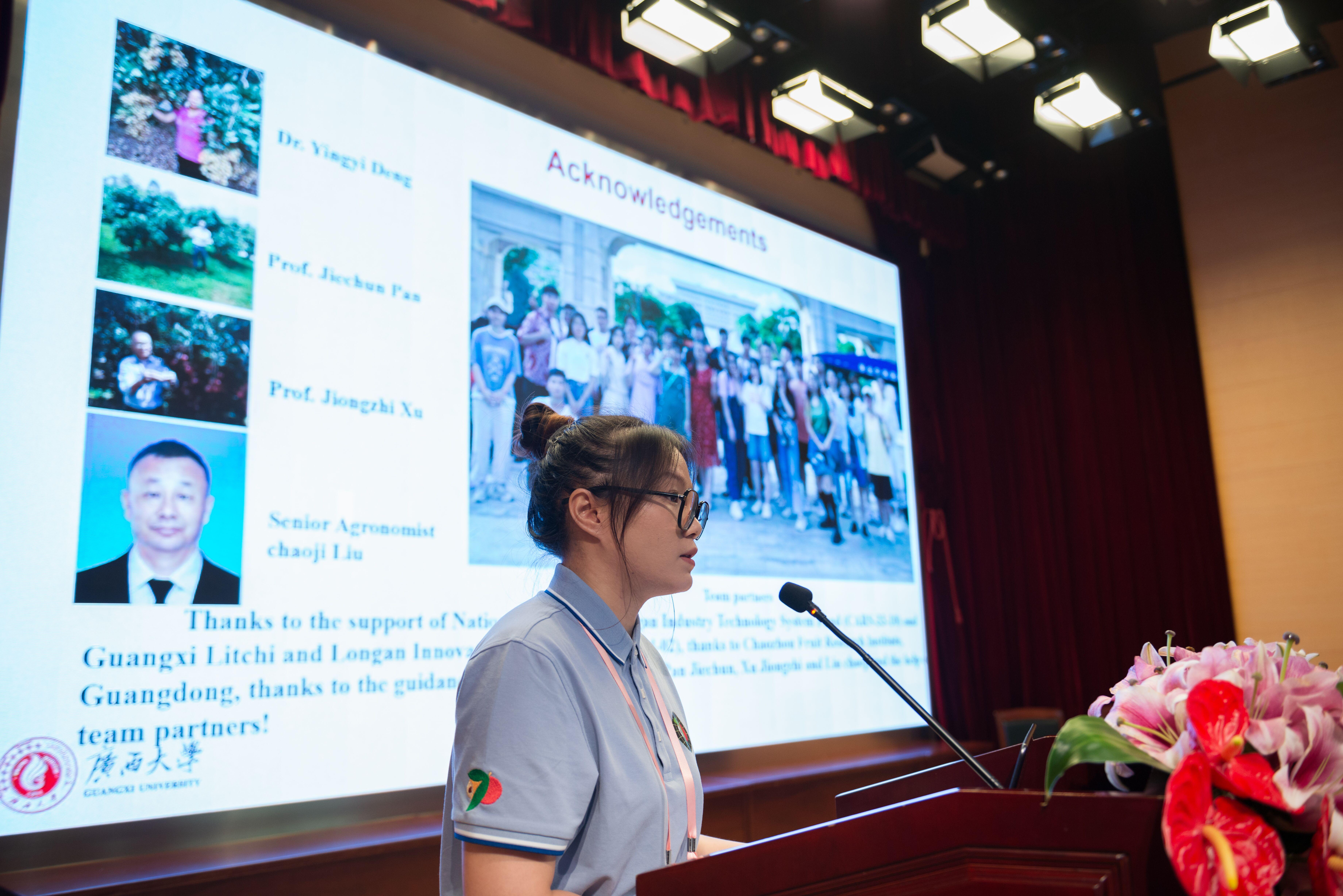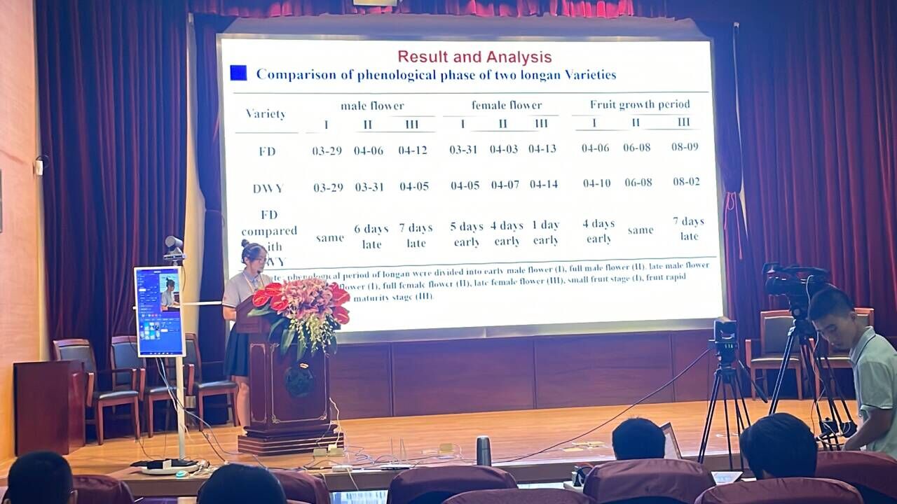 2023年6月,由邓英毅老师带队太阳成集团tyc122cc韦淑艳同学参加了第七届国际荔枝龙眼和其他无患子科果树学术研讨会学术会议,在会上做了‘凤大晚蜜’龙眼在南宁的引种表现专题报告,发表了《‘凤大晚蜜’龙眼在南宁的引种表现》论文。